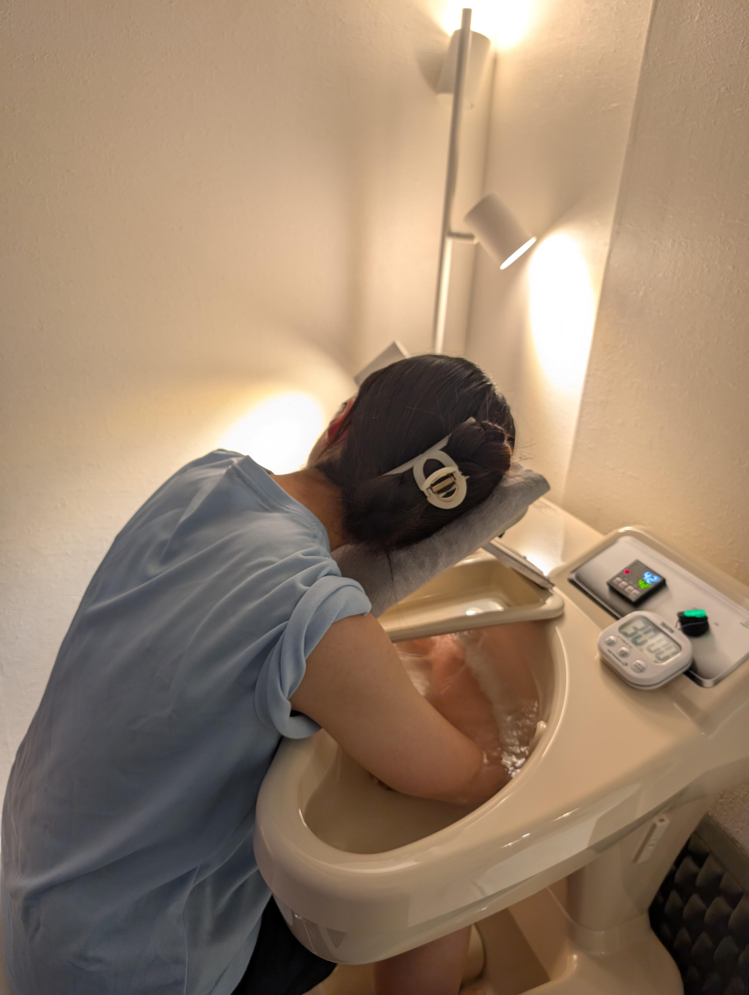 準備が整ったら、画像のように足からゆっくりと浴槽に入ります。